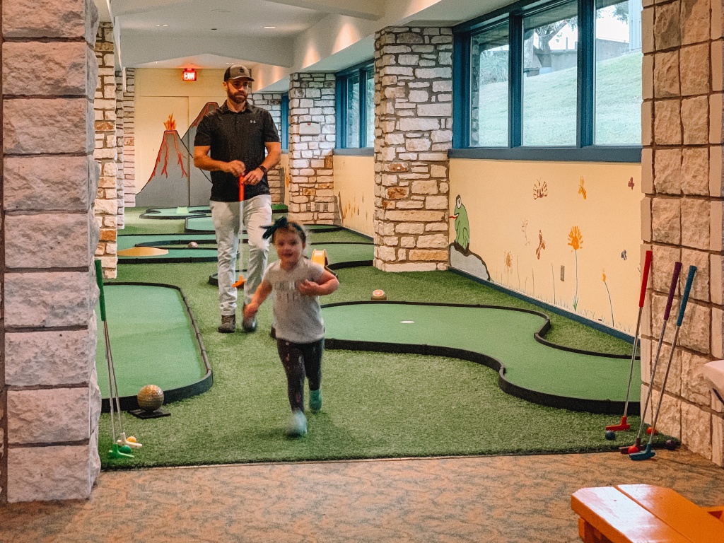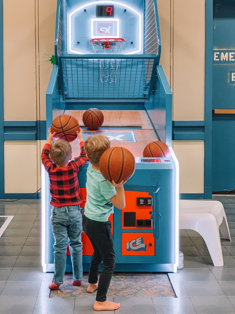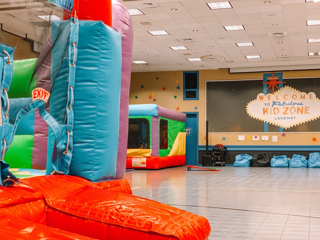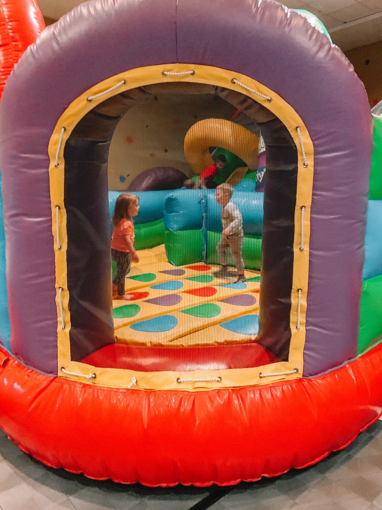 Kid? I forgot about him for a minute. Mainly because they have a HUGE kids zone. It looks small from the outside but go in to see THREE bounce houses, a putt-putt golf course, a playroom with couches and movies, a toddler area and so much more. Kids can play for free and if they’re over five you can drop them off for a couple hours at a time! WHAT IS THIS LIFE?!